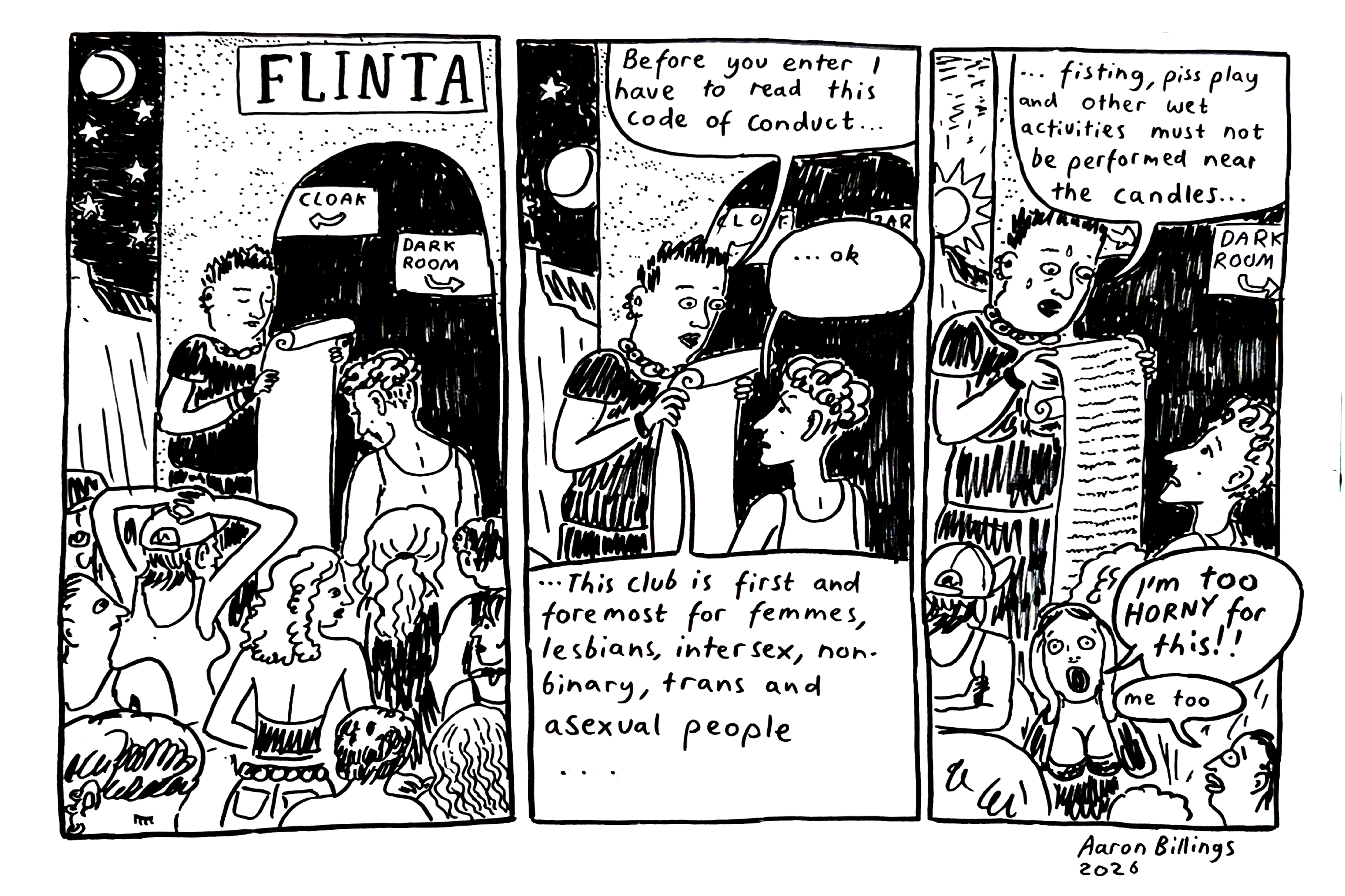 Over the summer just passed, I’d begun to see the new acronym used more and more. Like Kath Day-Knight on her quest to discover Kim’s lesbianism, I roamed the streets (and my Explore page) and saw signs of it everywhere. A FLINTA bikepacking group. A FLINTA bookclub. A FLINTA life-drawing class. Mostly, though, I saw it on event posters for DIY or small-scale raves and club nights, which is what interested me most. For years now, millennials in Naarm had partied under the sign of “queer” and worked under the sign of “LGBTQIA+.” I wondered if FLINTA was the Alpha-Zoomer reboot, cleaving not just the queer community but the generations within it. I hadn’t exactly chosen these earlier identity markers—more inherited them—and if there was to be a changing of the guard, and with it, the jargon, I wanted to at least understand what we were getting into. Trends that seem confined to the darkest of darkrooms can spread rapidly to the mainstream. And when these trends are absorbed by corporate culture and government policy, they can terrorise you for years to come. If you don’t want to get $50 cash out from a FLINTATM (like the infamous rainbow diamante-encrusted “GayTMs” in Sydney) at the 2036 Mardi Gras, it would be prudent to take stock now.